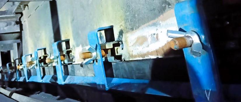 Our wear bars (also known as lifter bars) are used for grinding mills as stock items. These bars comprise of aluminium T bolt profile and wear resistant rubber. The aluminium profile vulcanized into the bar allows fast and easy installation due to the T-bolt fastening system.