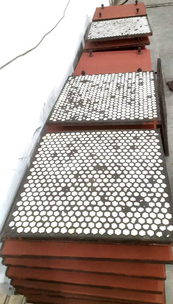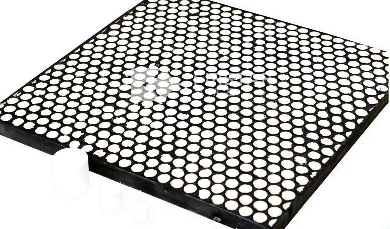 Our ceramic wear pads exploits the high wear resistance of high alumina (92%) ceramic tiles and is especially suited for applications such as fine abrasive sliding particles and high-speed wet slurry. Waidhan groups ceramic wear pads are supplied with special CN bonding layer for very good adhesion to the metal or rubber surface. Metal backed liners are also available.