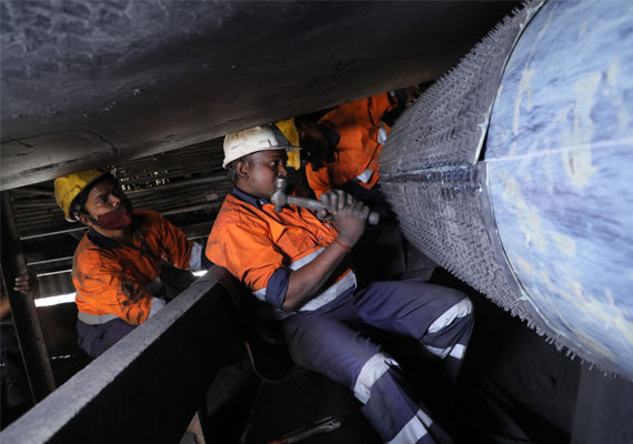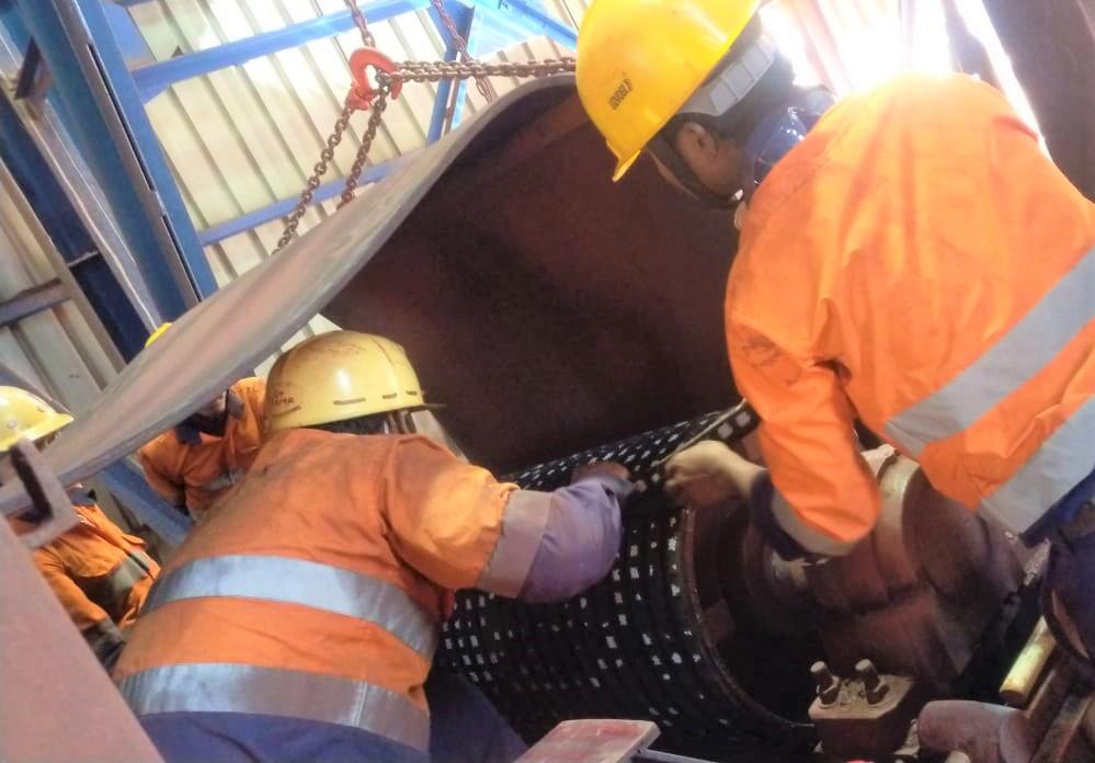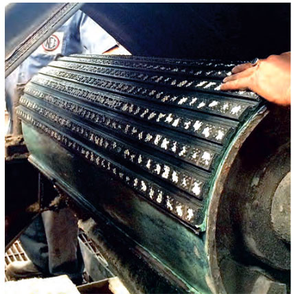 Pulley lagging by cold vulcanizing is done without removing the pulley from the conveyor structure thus, reducing the installation cost and downtime using in-house cold vulcanizing cements and lagging sheets.