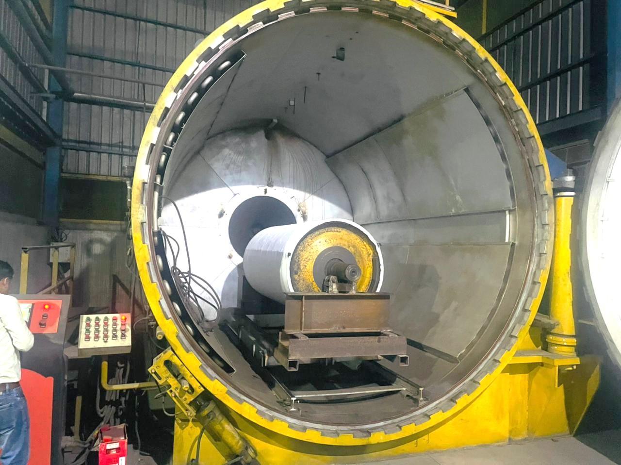 Waidhan group offers lagging of conveyor belt pulleys by cold & hot vulcanizing process. We have installed a large autoclave for pulley lagging by hot process. The autoclave can accommodate pulleys upto 2000mm diameter and face width upto 3000mm.